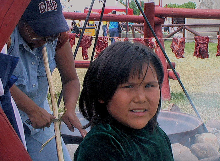 Hier wird Fleisch am Feuer getrocknet, anschließend pulverisiert und
