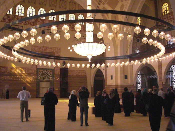Kopftuch verhüllt. Der Kronleuchter hat 952 Lampen und unter der