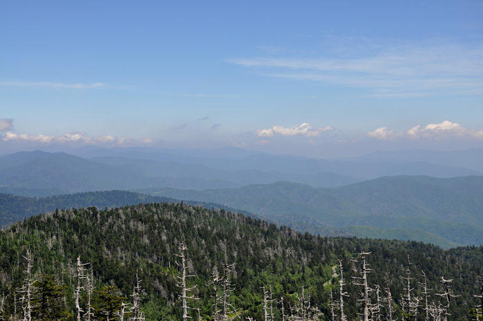 Blick vom Clingmans Dome, dem höchsten Berg (2025 m) der Great Smoky Mountains, der Großen Rauchenden