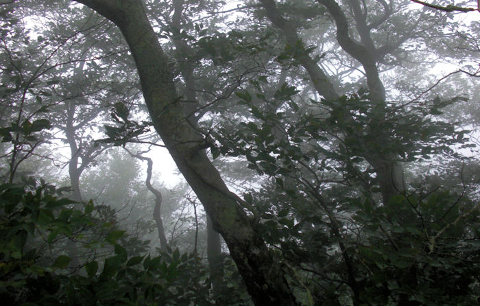 Der Nebel und Dunst erklärt auch, wieso hier so viele Immergrüne Büsche, vor