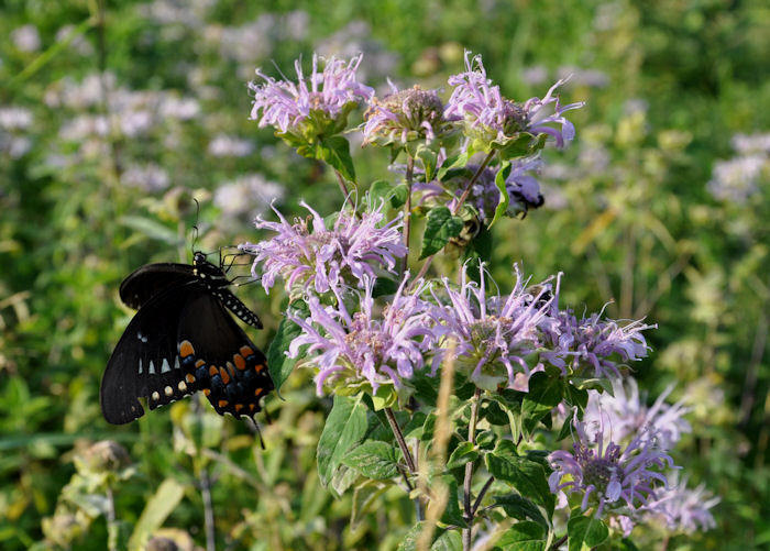 Die Indianernessel (Monarda fistulosa) und der Schwarze Schwalbenschwanz (Papilio