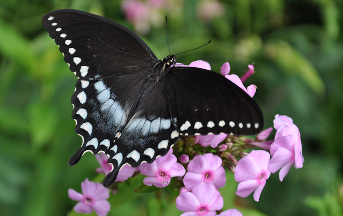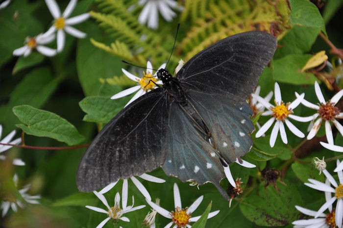 Oft begleitet vom Spicebush-Schwalbenschwanz (Papilio troilus).