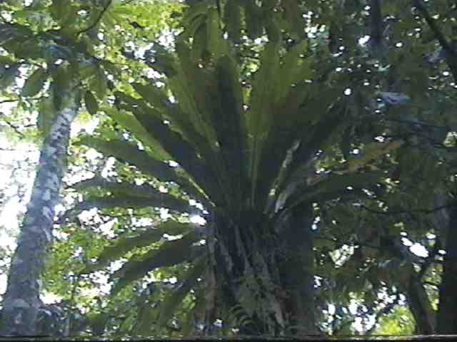 Über unseren Köpfen hingen riesige, epiphytische Farne an den Bäumen.
