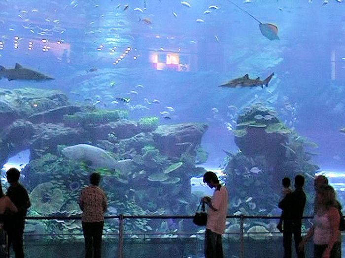 Das Aquarium innerhalb der Dubai Mall ist 3 Stockwerke hoch, mit 70 cm