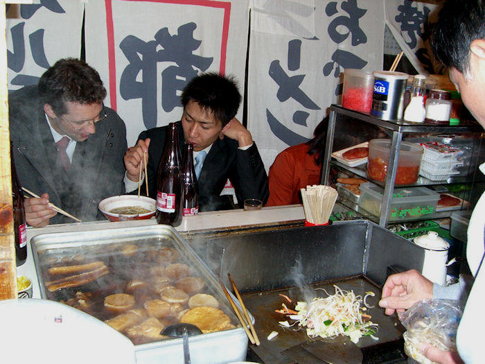 Viele kleine Restaurants sind geschmückt, doch nur mein Freund Taka weiß, wo