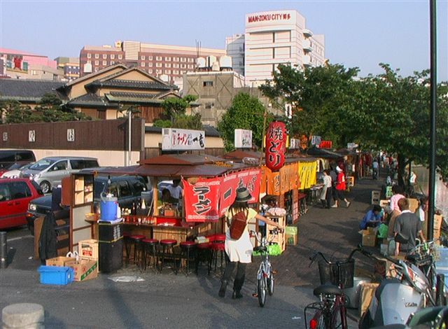 Nakasu ist der größte Unterhaltungsbezirk in West-Japan. Hier befinden sich mehr als 2.000 Restaurants, wobei die kleinen, mobilen Imbisse nicht eingerechnet sind. Nach der Arbeit finden sich hier viele Leute und Kollegen zum Essen und Trinken ein. Die Naka-Fluß-Promenade ist eine beliebte Bummelmeile. In der Nähe befindet sich auch die älteste Shopping Arkade, Kawabata. Der sehenswerte Kushida-Schrein befindet sich am Ende von Kawabata.