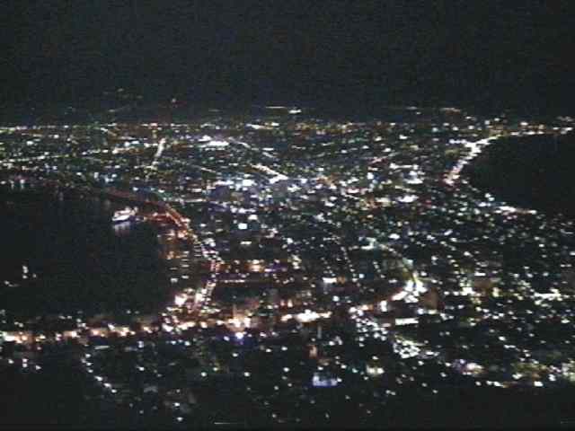 Tunnels. Der Berg Hakodate (334 m) bietet bei Nacht einen herrlichen Blick auf die Stadt, die sich wie eine die See kreuzende Brücke oder wie die