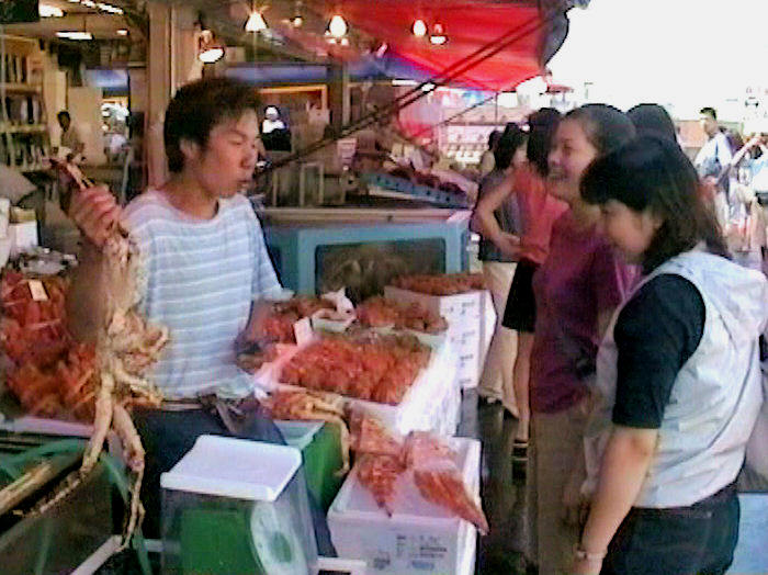 Der Fischmarkt in Hakodate ist für uns sehr interessant. Nie zuvor ahnte