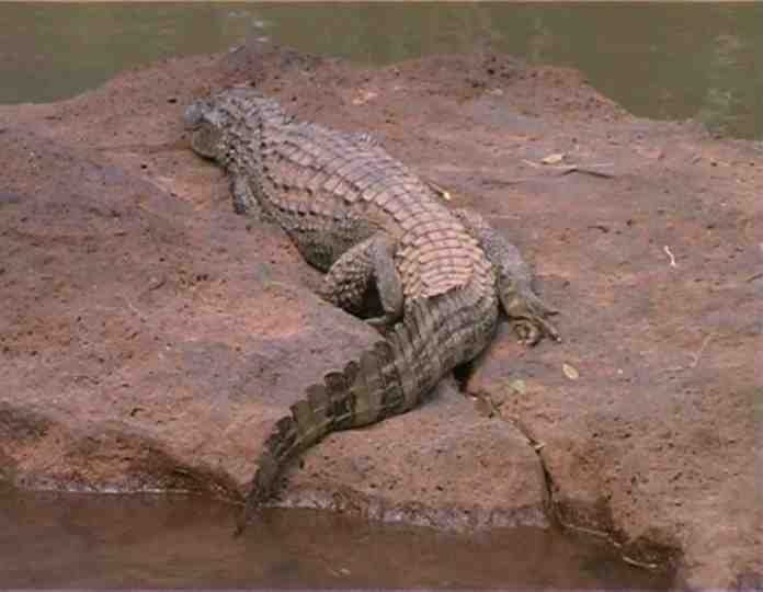 Tatsächlich konnten wir ein Krokodil beim Sonnenbad bewundern.