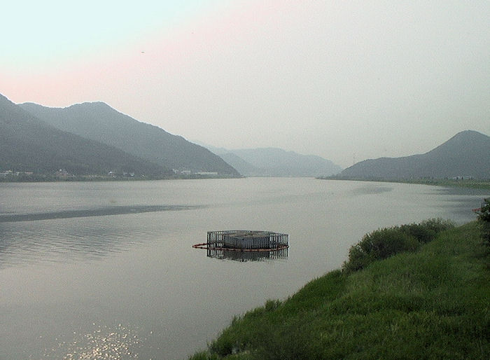 In den Flüssen sieht man die Käfige der Aquakultur.