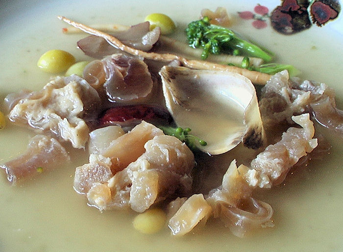 Mir war unbekannt, dass man Knorpel und Knochen (in der Mitte) oft essen