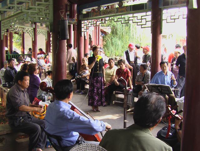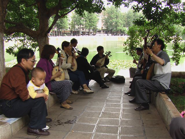 oder traditionelle Musikinstrumente spielten, hier in den Parks und auch an