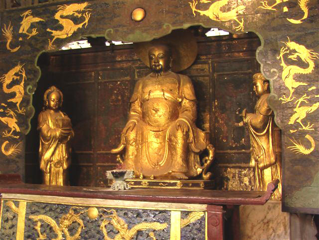 Innern befindet sich die Statue des Kaisers Zhengwu mit einem goldenen
