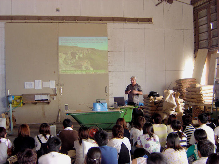 Vortrag vor Studenten im Stallgebäude der Station. Ich spreche über "Beef
