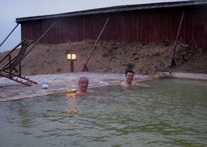 Am Abend wird die Diskussion im "kleinen Kreis" in einer heißen Quelle nahe