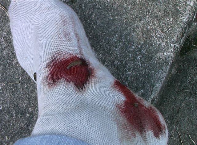 Schuh zerquetscht. Ein erschreckendes Bild aber ungefährlich. Die Blutegel