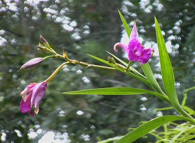 Orchideen am Wegesrand, allerdings so hoch oben, dass sie niemand erreichen