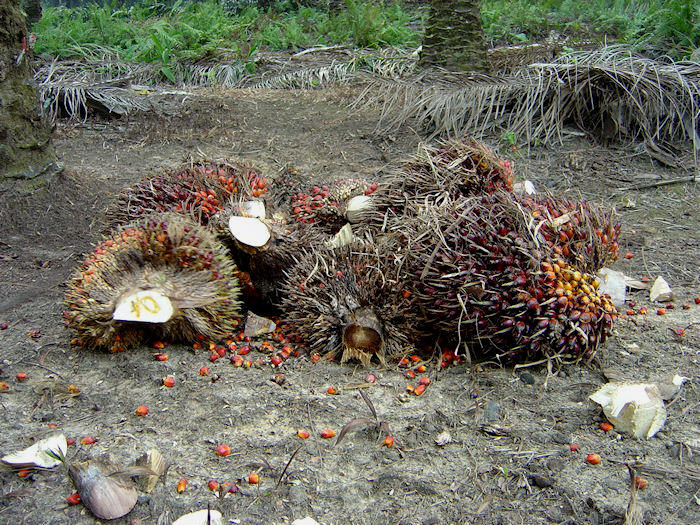 daraufhin, dass die Palmölplantagen Regenwald zerstören und die Umwelt stark