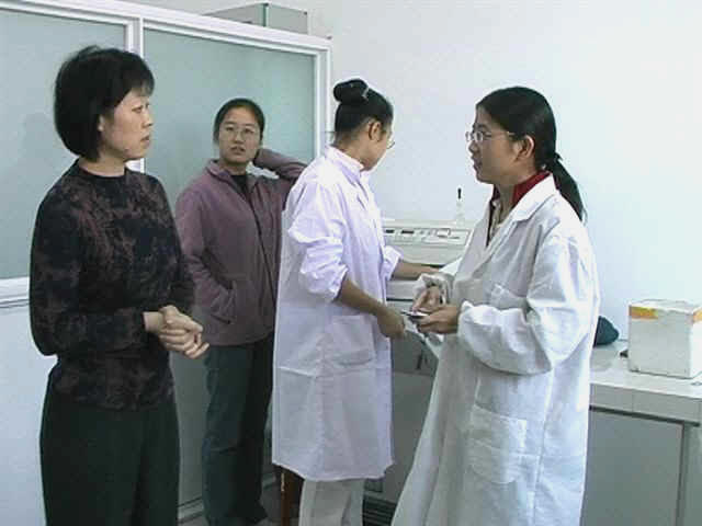 Dr. Yang und Studenten im Labor für Histologie. Fast alle