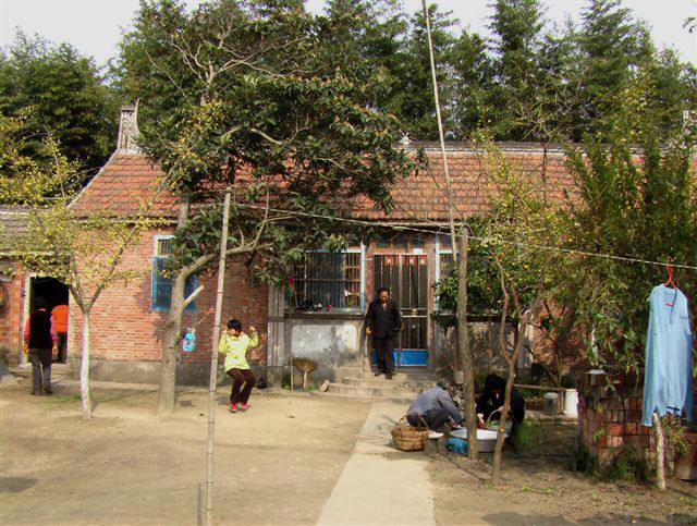 Der Hof von Jie's Onkel ist von allen Seiten von Gebäuden eingerahmt und zur