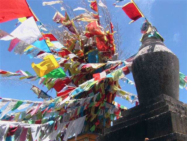 Überall flatterten die Gebetsfahnen. Die darauf gedruckten Sprüche sollen so