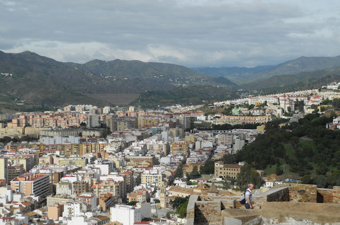 Blick von der Festung Gibralfaro in Richtung Botanischer Garten (Bildmitte).