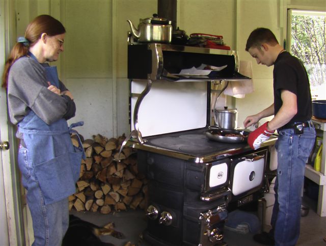 Der Herd wird nur mit Holz geheizt und wärmt den Aufenthaltsraum.