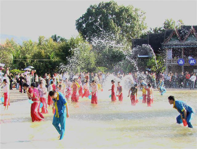 Nachmittag findet das "Wasserspritzenfest", Water Splashing