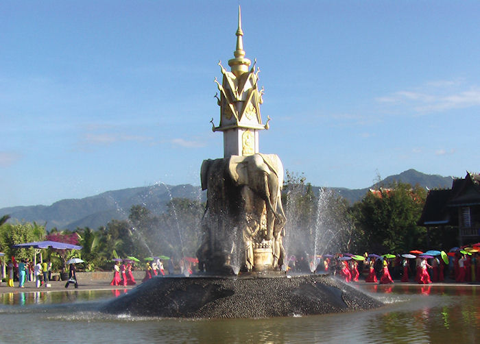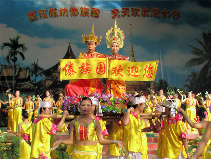 Parade der Dai-Tänzer und Sänger zum Water Splashing