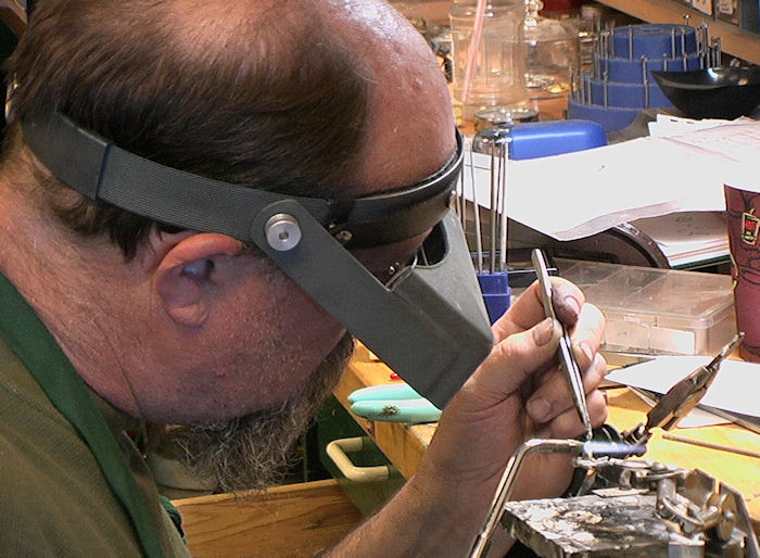 Der Goldschmied von Whitehorse befestigt ein hier in der Gegend gefundenes